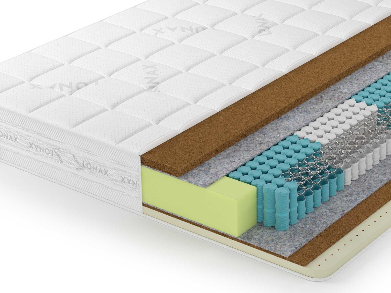Матрас разной жесткости сторон на основе натуральных наполнителей и современного блока с уменьшенным размером пружин S1000 5 зон (~500 пр./м2). Данный пружинный блок точечно распределяет нагрузку и поддерживает позвоночник в физиологически правильном положении.