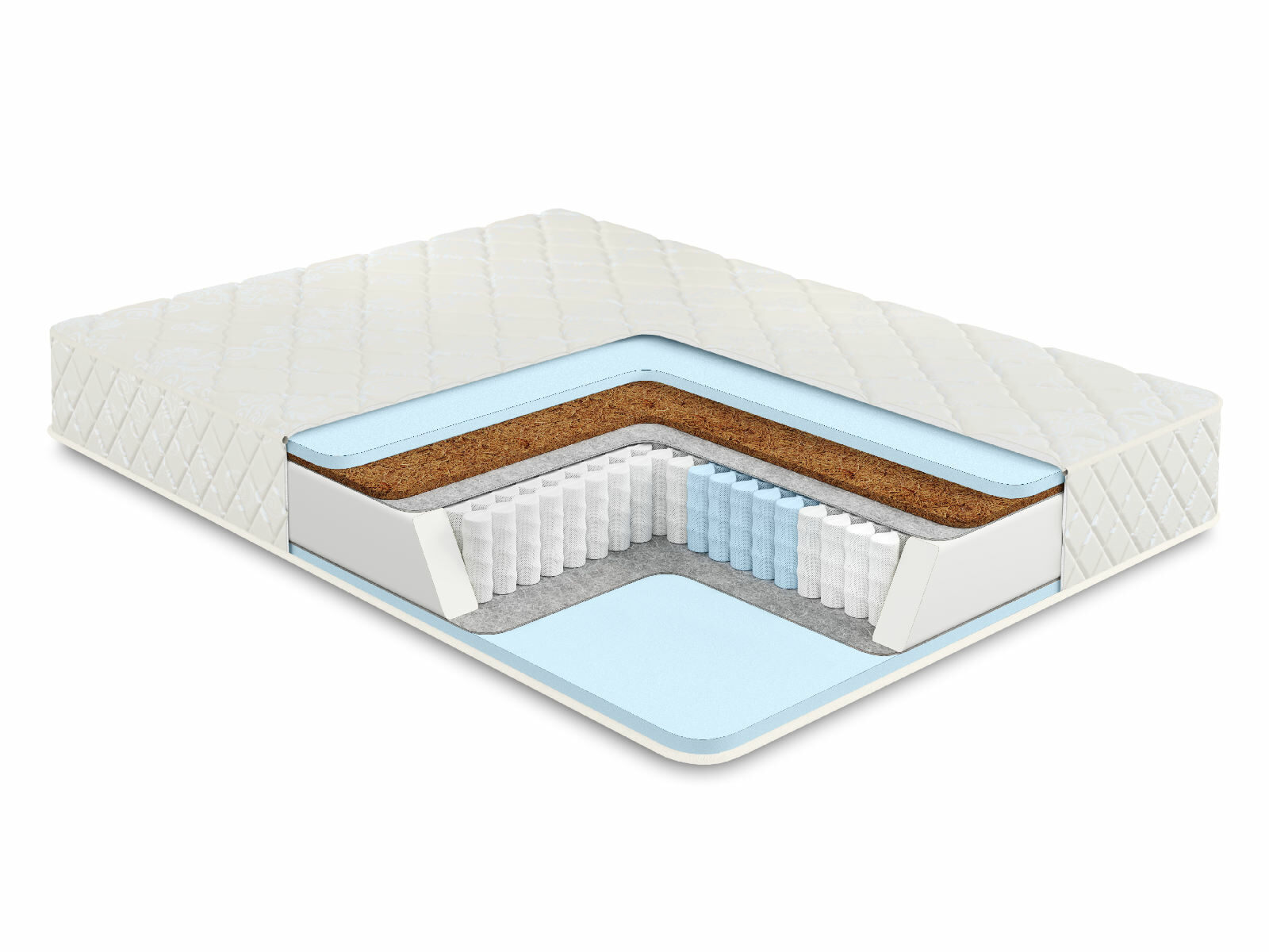 Более жёсткая сторона проложена такими наполнителями как кокосовая койра и пена Ecofoam. Поверхность помягче содержит один лишь слой пены. Оба материала известны своими гипоаллергенными качествами, а также примечательны тем, что не скапливают внутри себя пыль и влагу. Если Ecofoam представляет собой плотную пену, изготовленную из ППУ, то койру получают из прессованных волокон кокоса.
