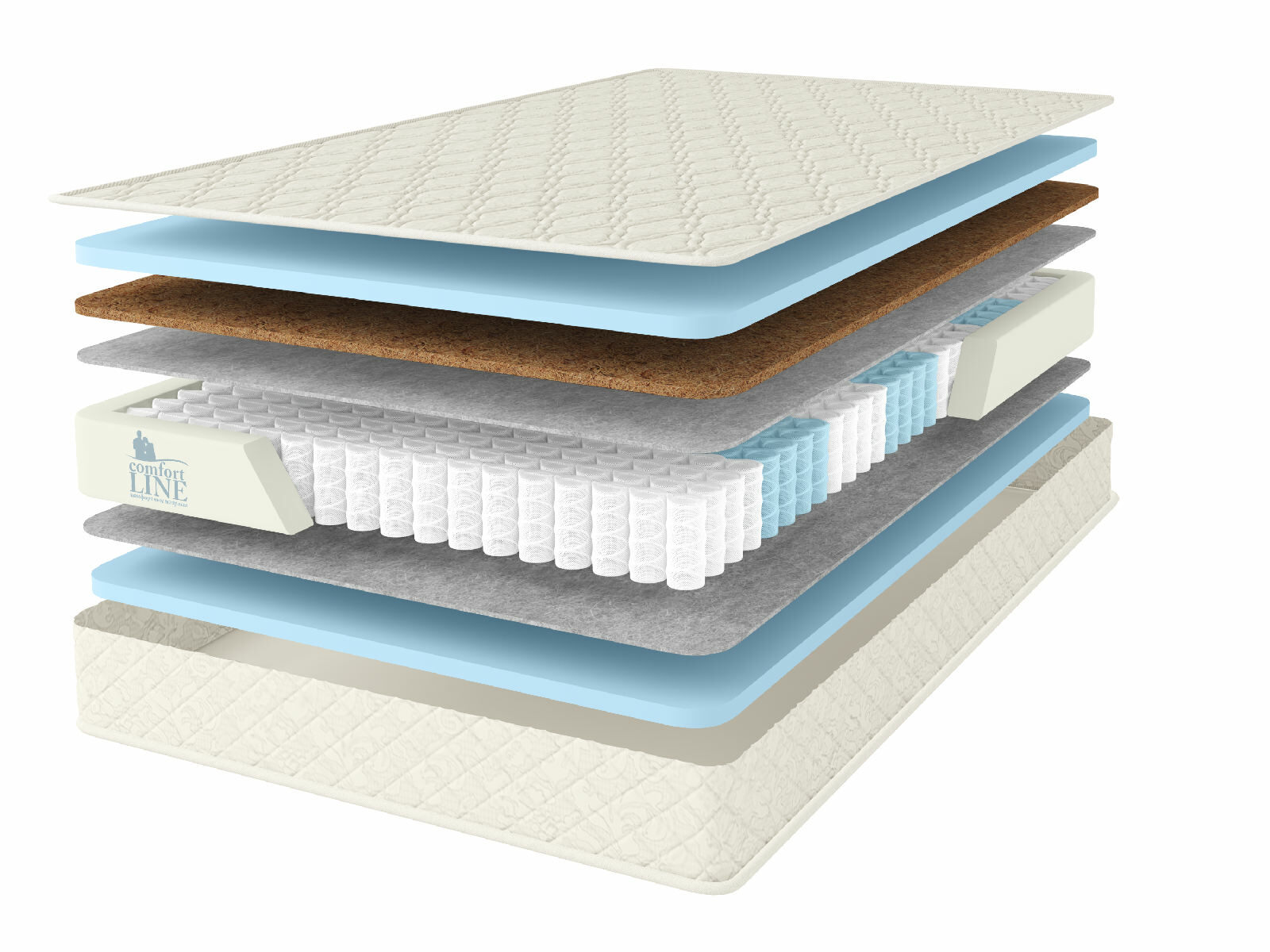 Чехол матраса, выполнен из хлопкового жаккарда, который обладает высокой износостойкостью. Простеган на экологически чистом гипоаллергенном материале Холкон (Hollcon). Ткань обработана специальной антибактериальной пропиткой SANITIZED. Пропитка обеспечивает полное уничтожение плесневых грибков, не дает развиваться микроорганизмам, пылевым клещам и микробам.