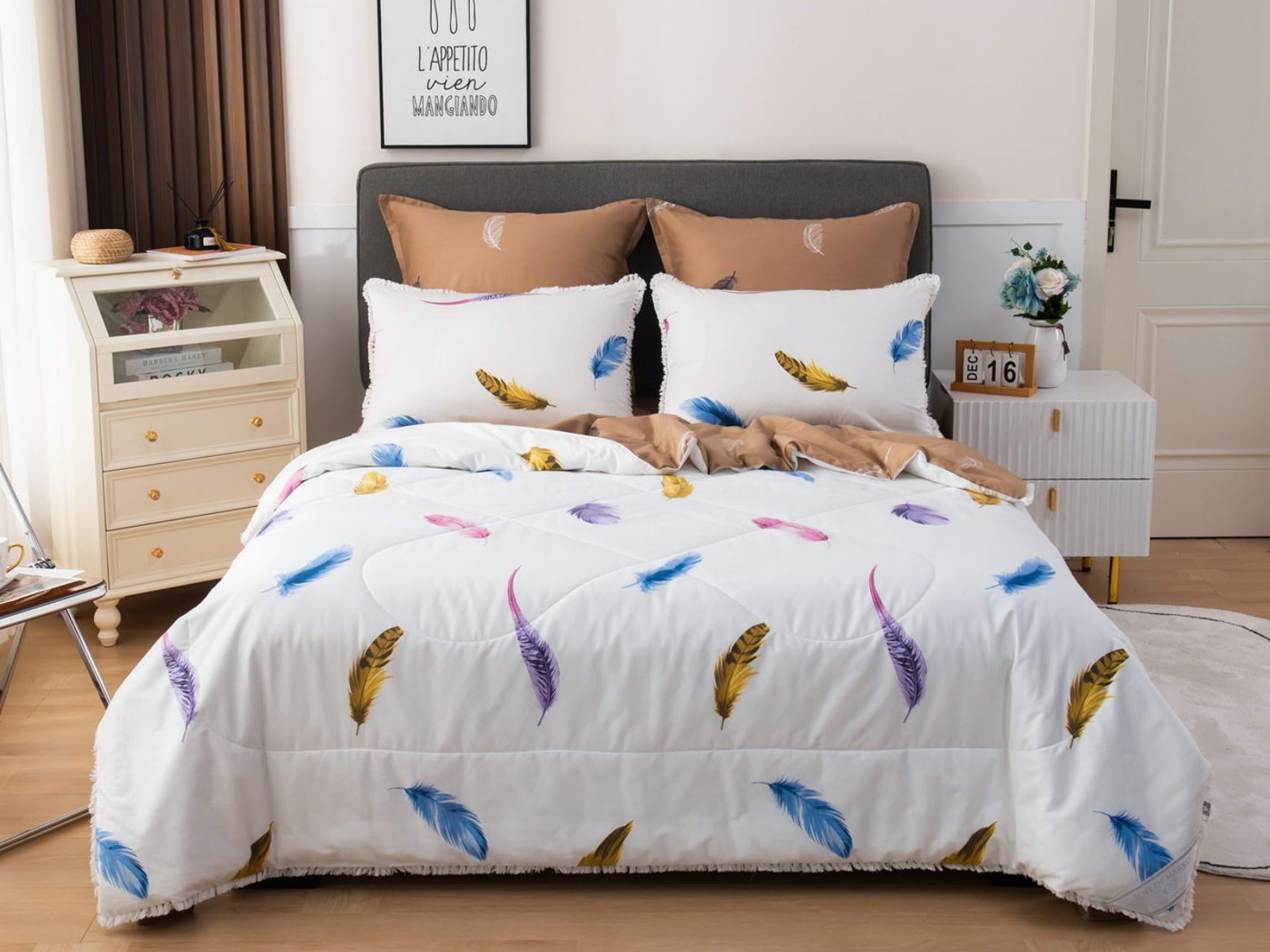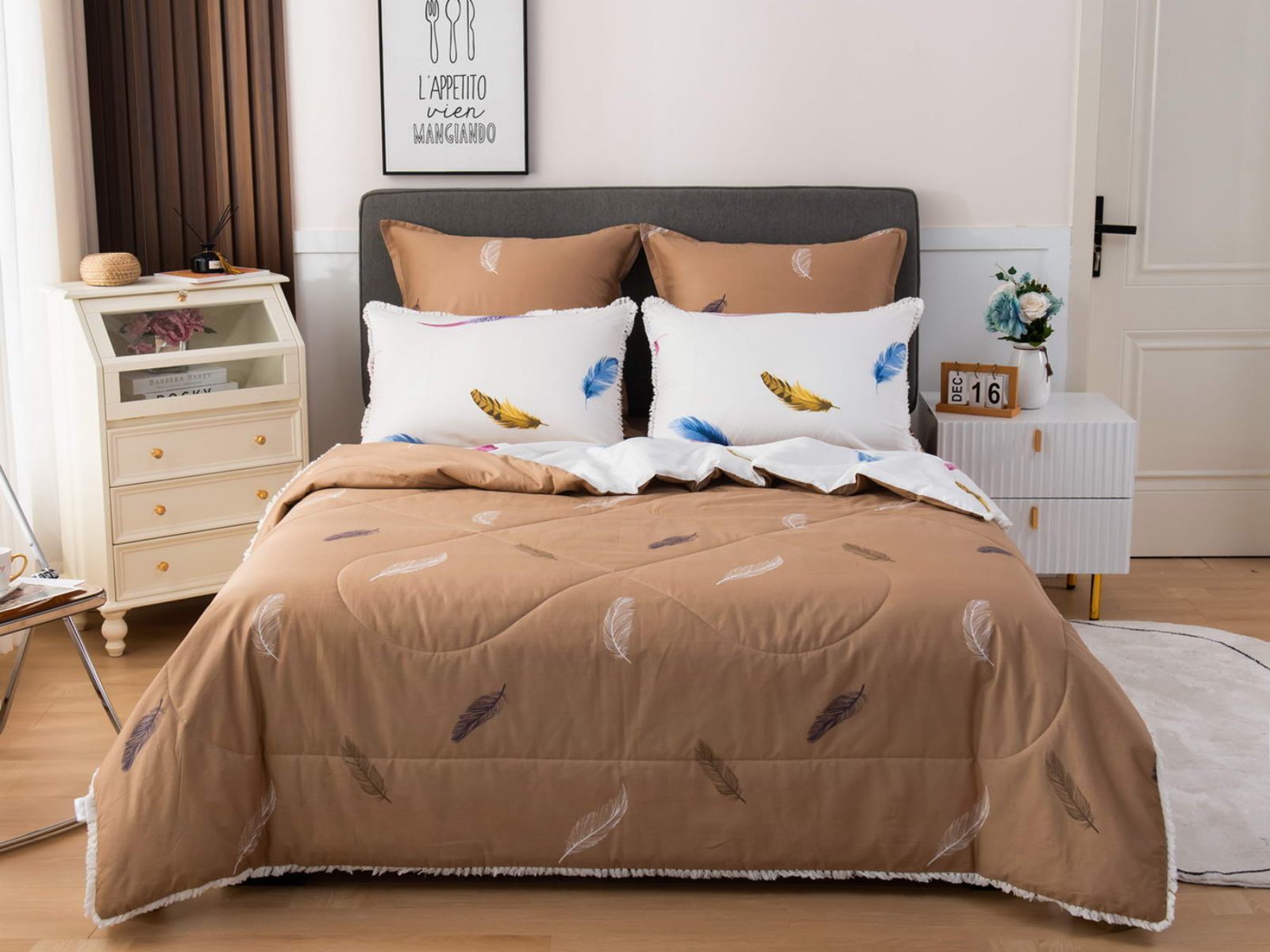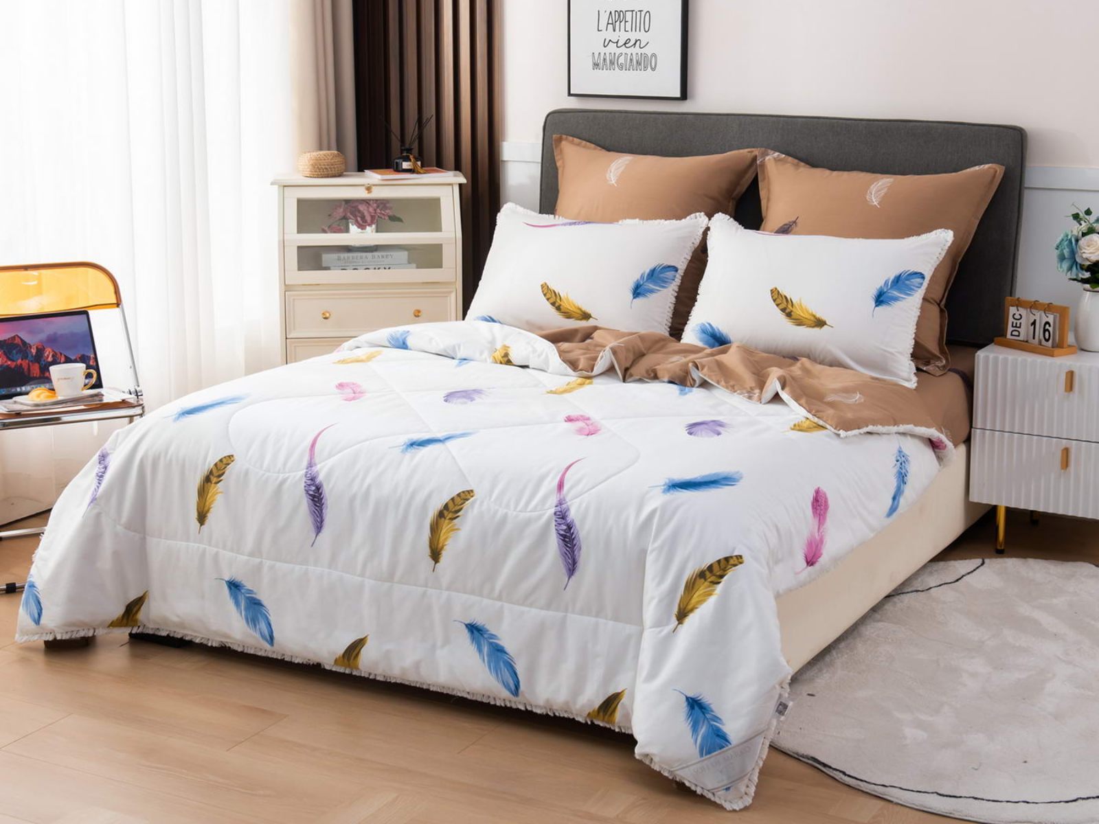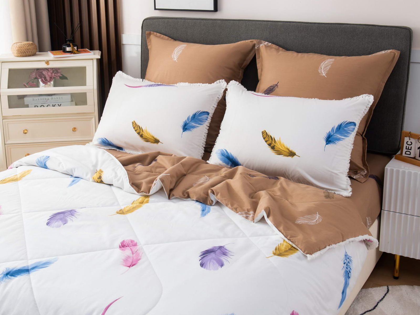 В комплекты комфортеров с одеялом Бернадетт входят наволочки, простыня и легкое всесезонное одеяло. Оцените это современное и очень удобное решение, которое идеально подходит тем, кто не любит возиться с пододеяльниками.
