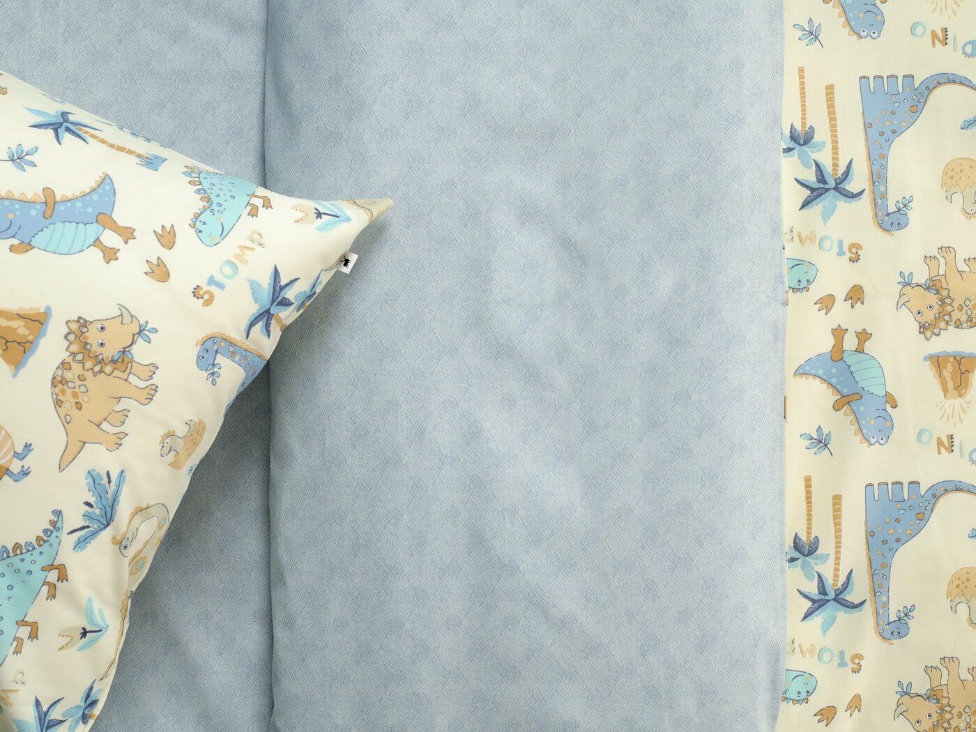 Пододеяльник –двусторонний: верх из ткани А (принтованная ткань), обратка из ткани В (однотонная рогожка), с потайной молнией.