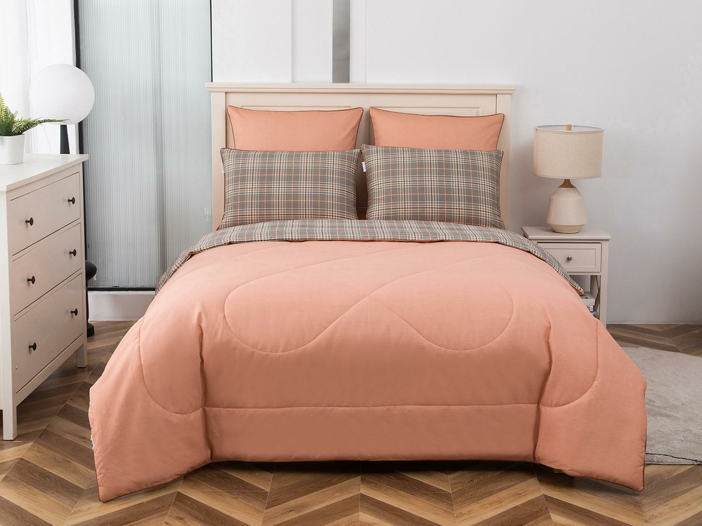 Особенность: двусторонняя модель, наволочки и одеяла декорированы кантом.
