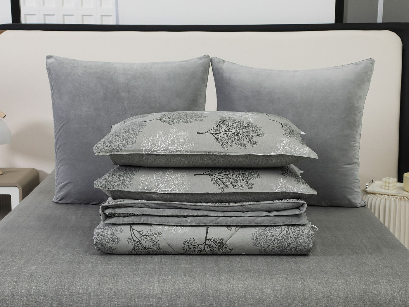 Новая коллекция комплектов «Роберто» с одеялом из однотонного велюра и принтованного сатина.