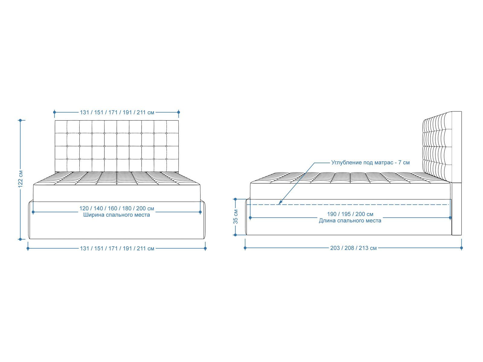 Мягкая кровать с обивкой из велюра.