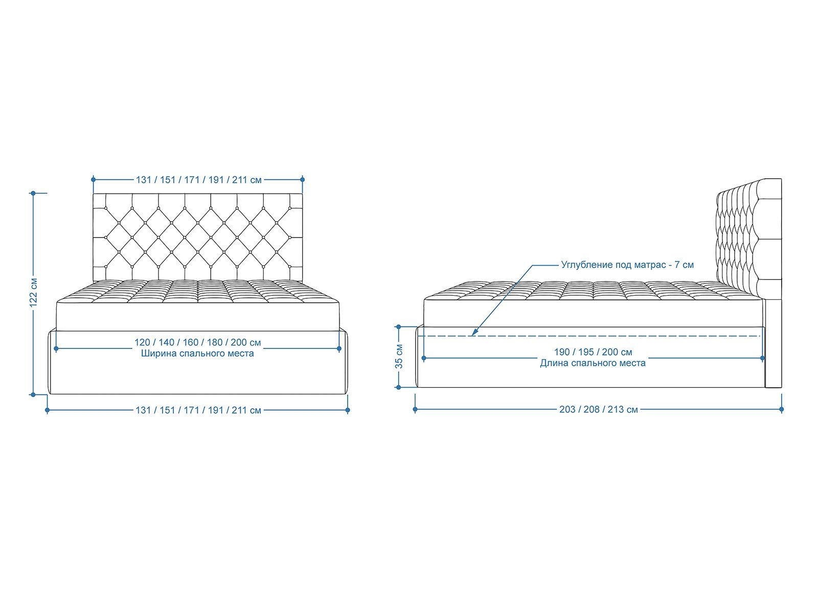 Мягкая кровать с обивкой из велюра.
