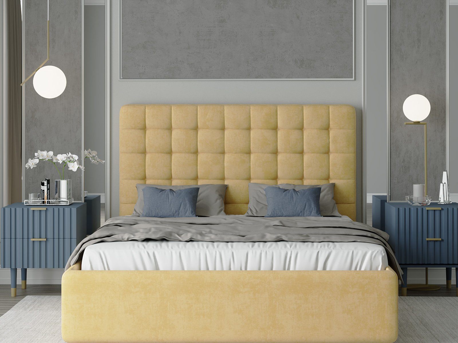 Мягкая интерьерная кровать Вита (Vita) с увеличенной высотой объемного изголовья доказывает, что простота может быть элегантной. Изголовье имеет скругление на углах и декорировано стежкой с утяжками в виде небольших квадратов. Для придания особой изысканности и шарма изголовье можно декорировать пуговицами или стразами (платная опция).