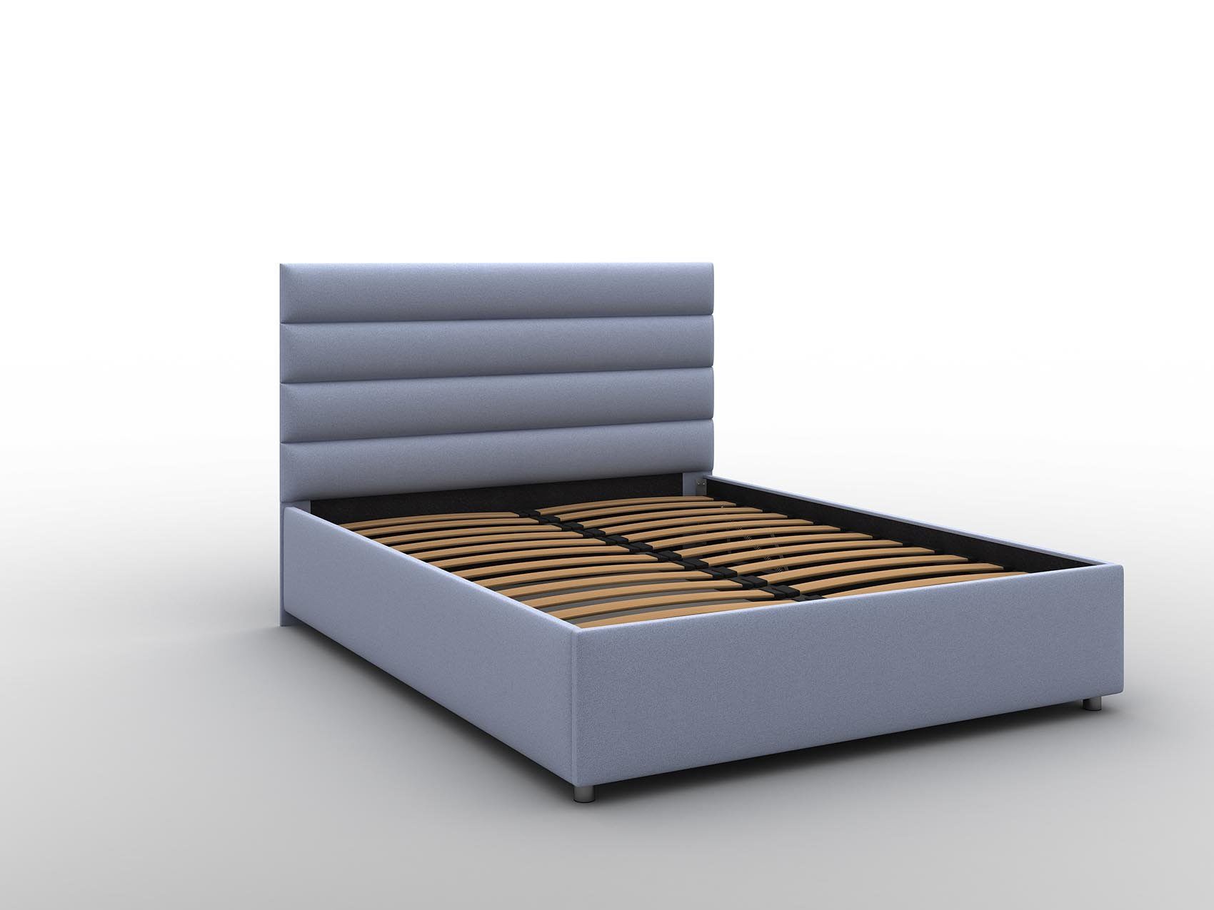 В комплект к кровати поставляется металлическое основание с гибкими деревянными ламелями. Конструкция обеспечивает более плавную и аккуратную поддержку матраса в сравнении с обычным плоским остовом.