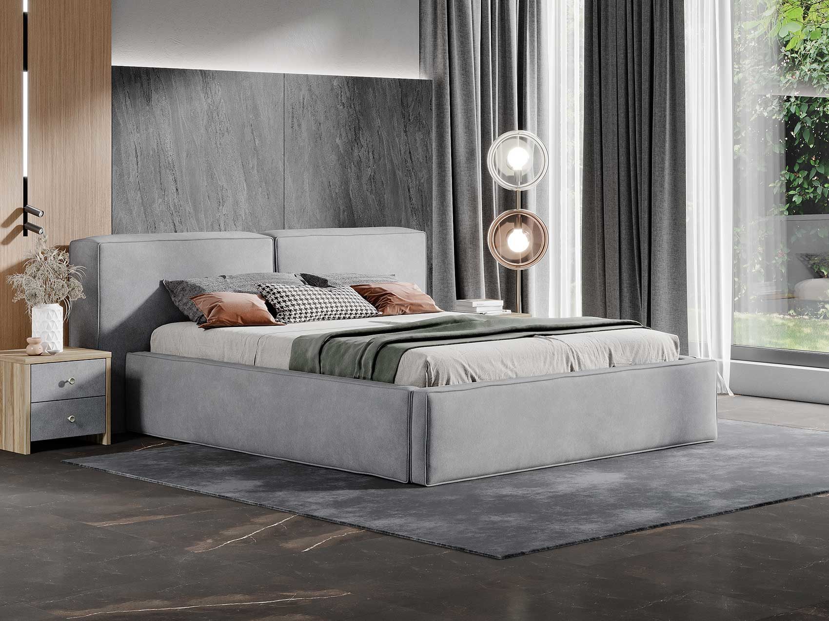 Дизайн кровати Europa подойдет для интерьеров в современном стиле, стиле лофт и минимализм. Спинка выполнена в виде двух объемных подушек. Широкие царги опущены до пола, а декоративный кант подчеркивает строгость и брутальность. Увеличенная прочность достигается за счет внутреннего металлического каркаса по периметру кровати. Опционально возможно изготовление кровати с бельевым ящиком и подъемным механизмом.