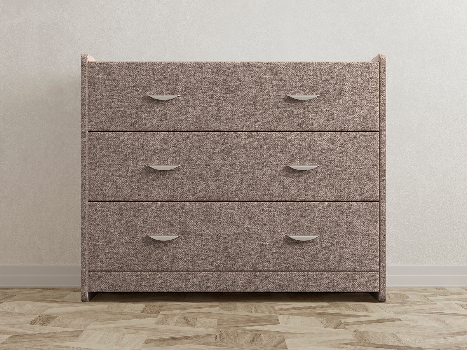 Современный и элегантный комод отличается повышенным удобством. Фасад ящиков и стенки комода покрыты обивочным материалом и выполняются в 43 вариантах цветового исполнения. Для удобства использования и продления срока эксплуатации, рекомендуется использовать стеклянную накладку. Накладка используется в качестве столешницы для тумбы и защищает ее от повреждений и загрязнений. Стеклянная столешница заказывается дополнительно.