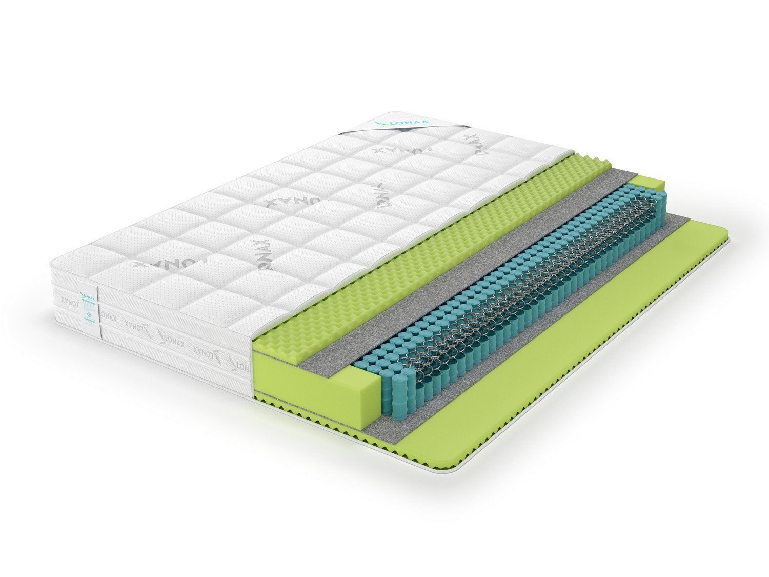 Красивый и объёмный матрас Relax ППУ S1000 оснащён примечательных чехлом. Изделие оббито серебристо-белым жаккардом с хлопково-вискозным составом материала, который разлинован аккуратной квадратной стёжкой. Ткань имеет фирменный принт Lonax, который является гарантом оригинальности модели.