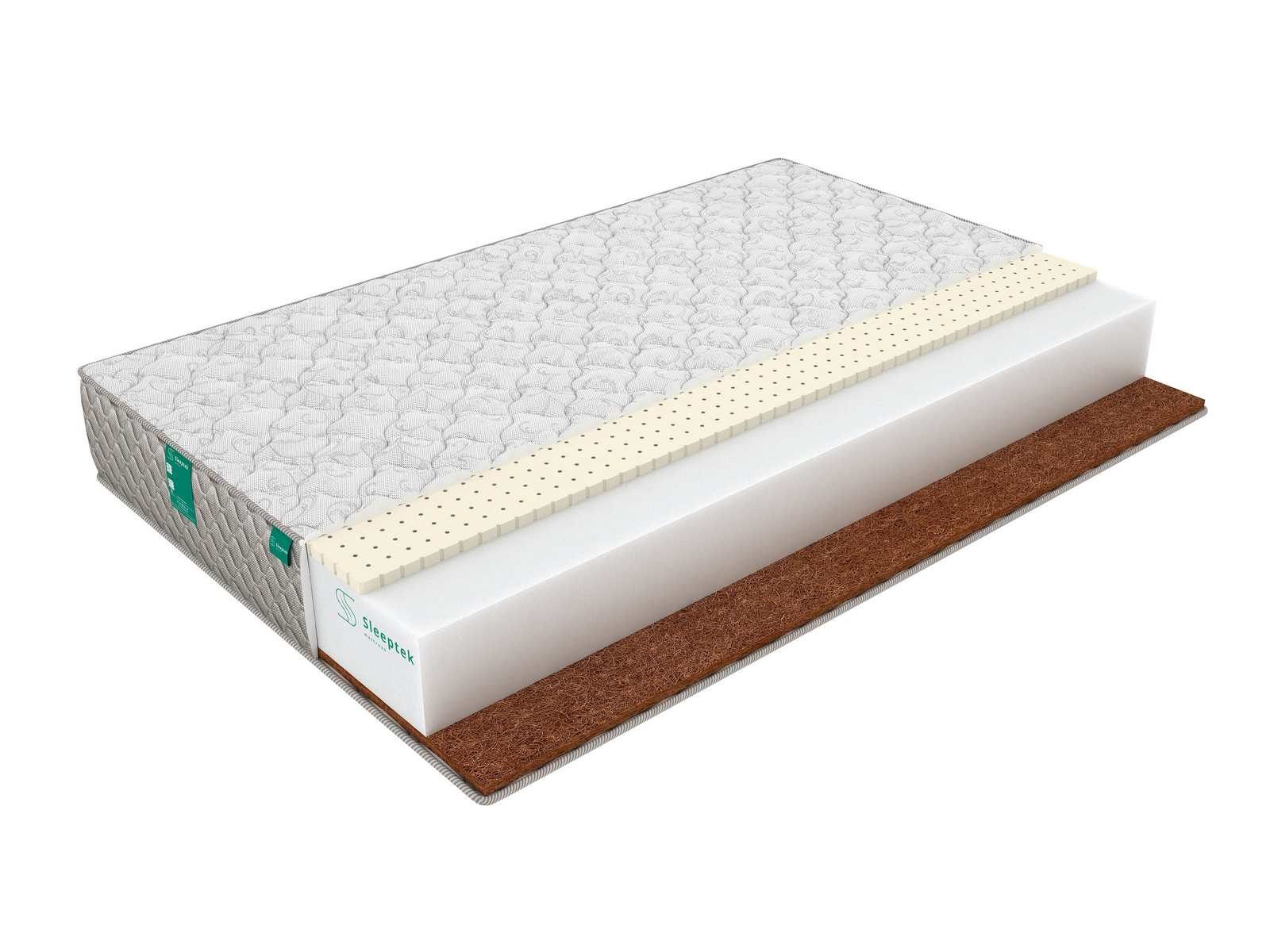 И койра, и латекс являются безопасными, экологически чистыми материалами, обладают долгим сроком службы, устойчивы к накоплению пыли и влаги, хорошо вентилируются и способствуют правильной терморегуляции. Между слоями наполнителей находится блок ортопедической пены высотой 18 см, который придает модели устойчивость. Пена, как и наполнители, полностью безопасна для здоровья и гипоаллергенна.