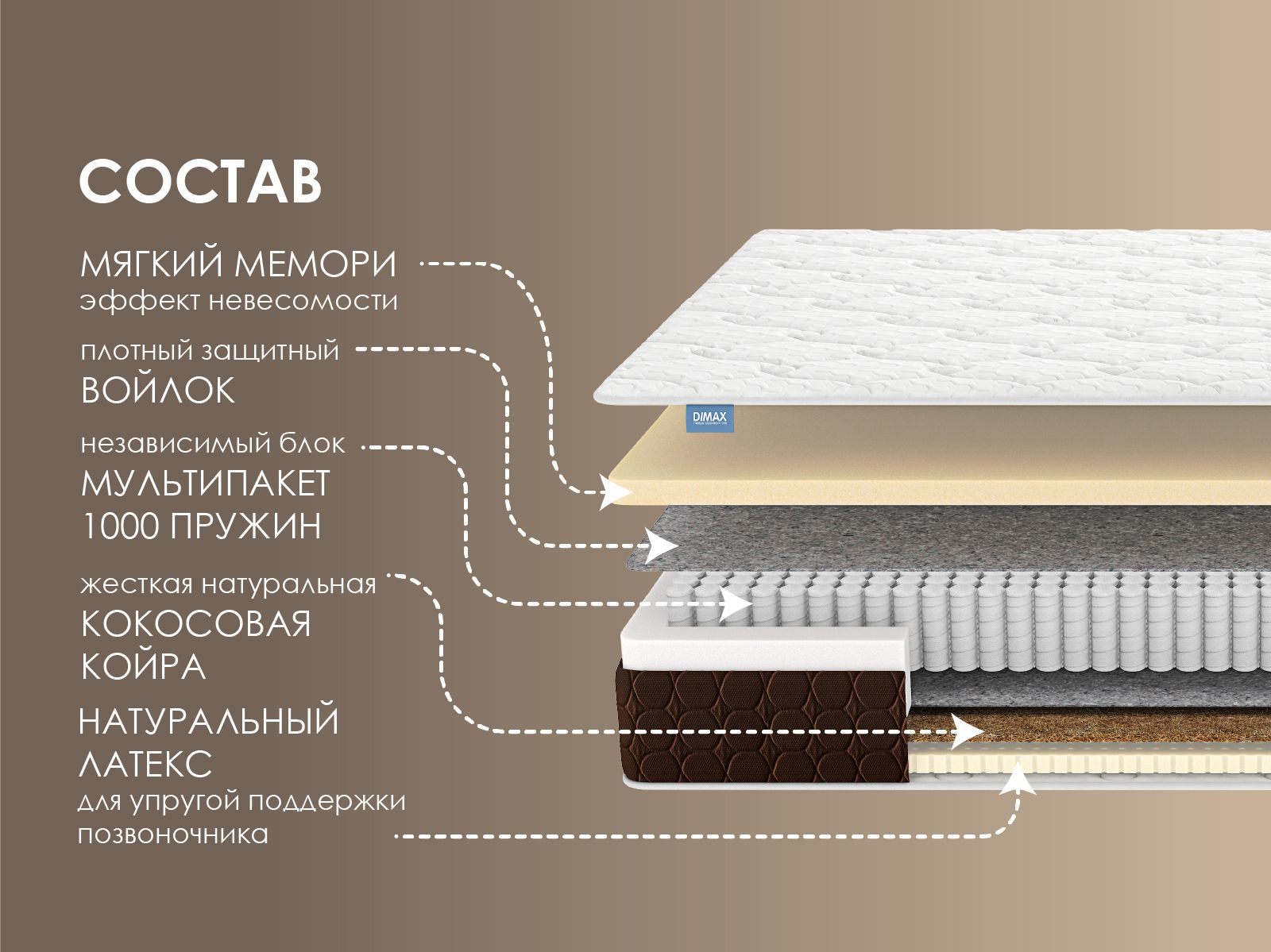 Димакс Мега Медиум Мемо – это двусторонний ортопедический матрас, в котором сочетаются две принципиально разные стороны жёсткости: одна мягкая с эффектом невесомоти, другая – со средней упругостью. Переверните матрас, и вы словно спите на совершенно другой модели.