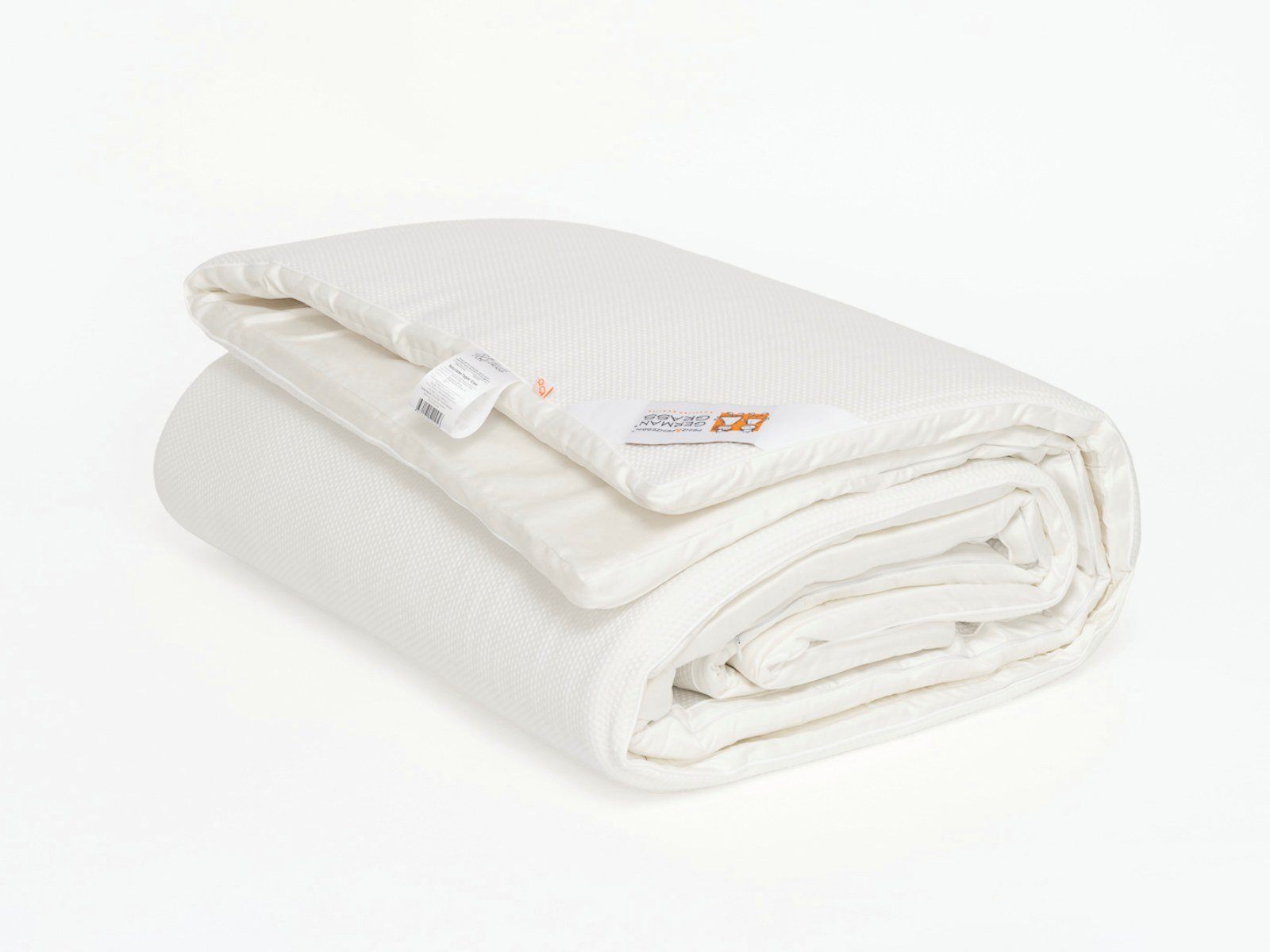 Ткань чехла: двусторонний трикотаж, специально подготовленный для изделий из латекса: внешняя поверхность - 33% Viscose и 3% Elastane , нижняя поверхность - 64% Polyester. Цвет- белый.