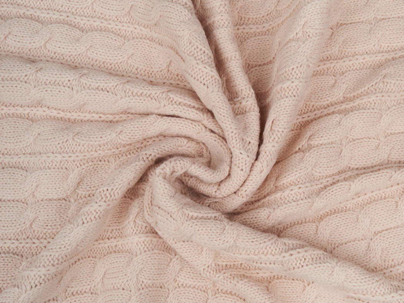 Он очень мягкий, не колючий, шерсть согревает, а структура вязки хорошо пропускает воздух, поэтому укрываться таким пледом комфортно в любую погоду.