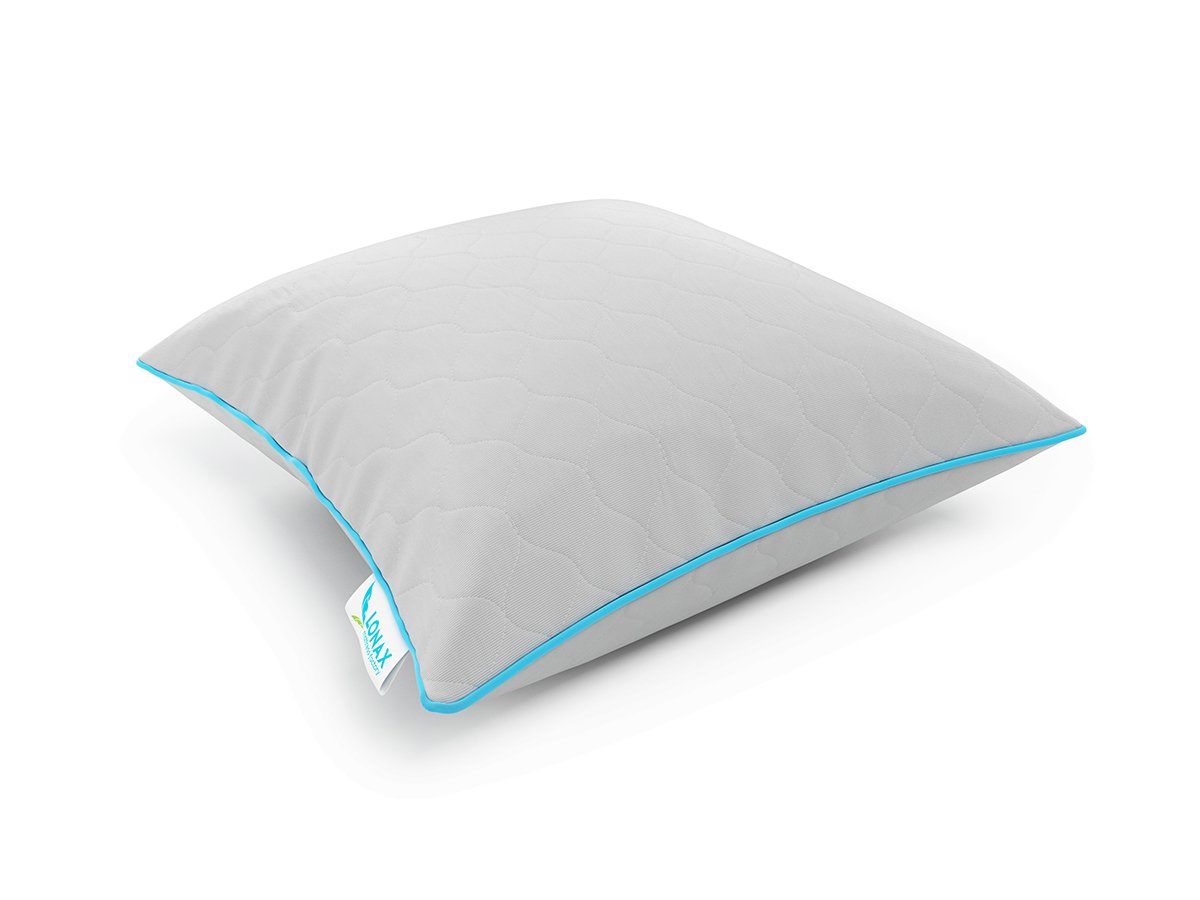 Подушка Tik средней жесткости. В качестве наполнителя используются гранулы из натурального и искусственного латекса. Чехол изготовлен из серого жаккарда плотностью 164 гр/м2.