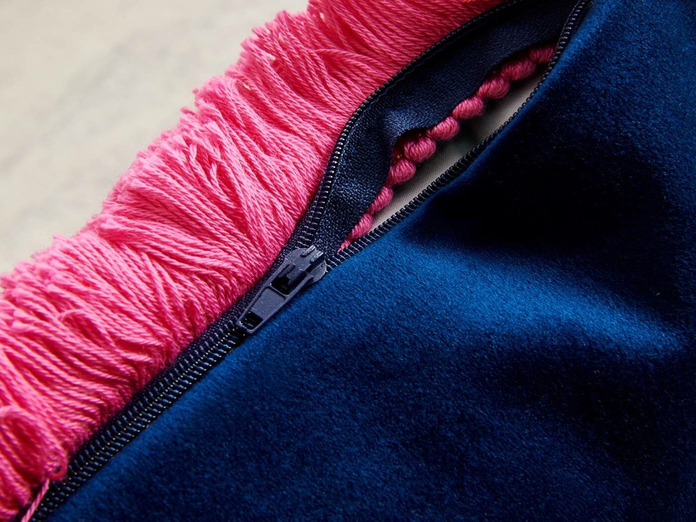 Особенность : с бахромой, потайная молния под цвет вшита в край наволочки.