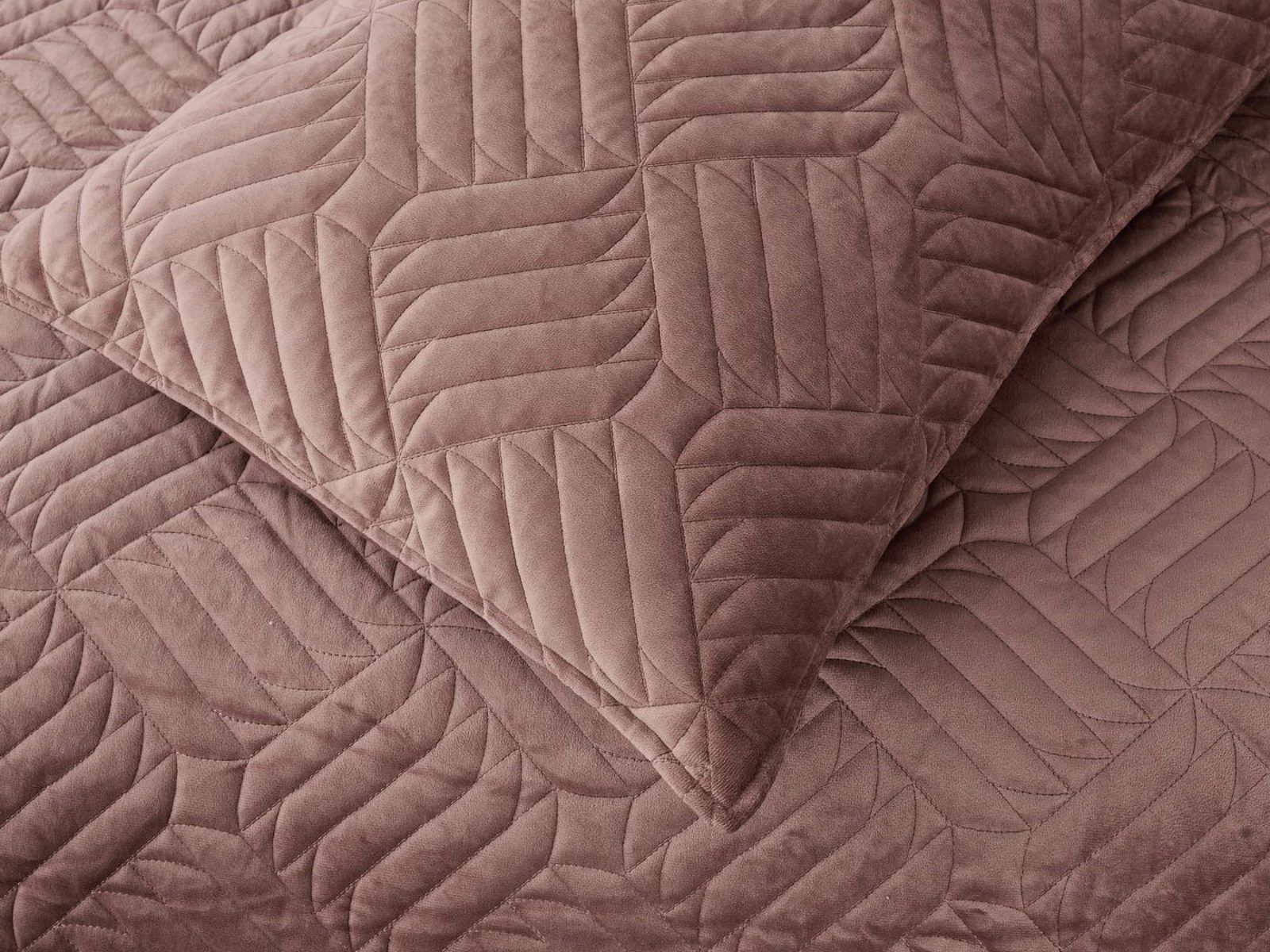 Покрывала выполнены в 10 оттенках: крем, мокко, пепельный, песочный, светло-бежевый, светло-серый, серый, темно-серый, чайная роза и черный. Стежка в виде геометрического орнамента подойдет к любому современному интерьеру. Из-за особого плетения, велюровая ткань покрывала отражает свет и красиво переливается при различном освещении.