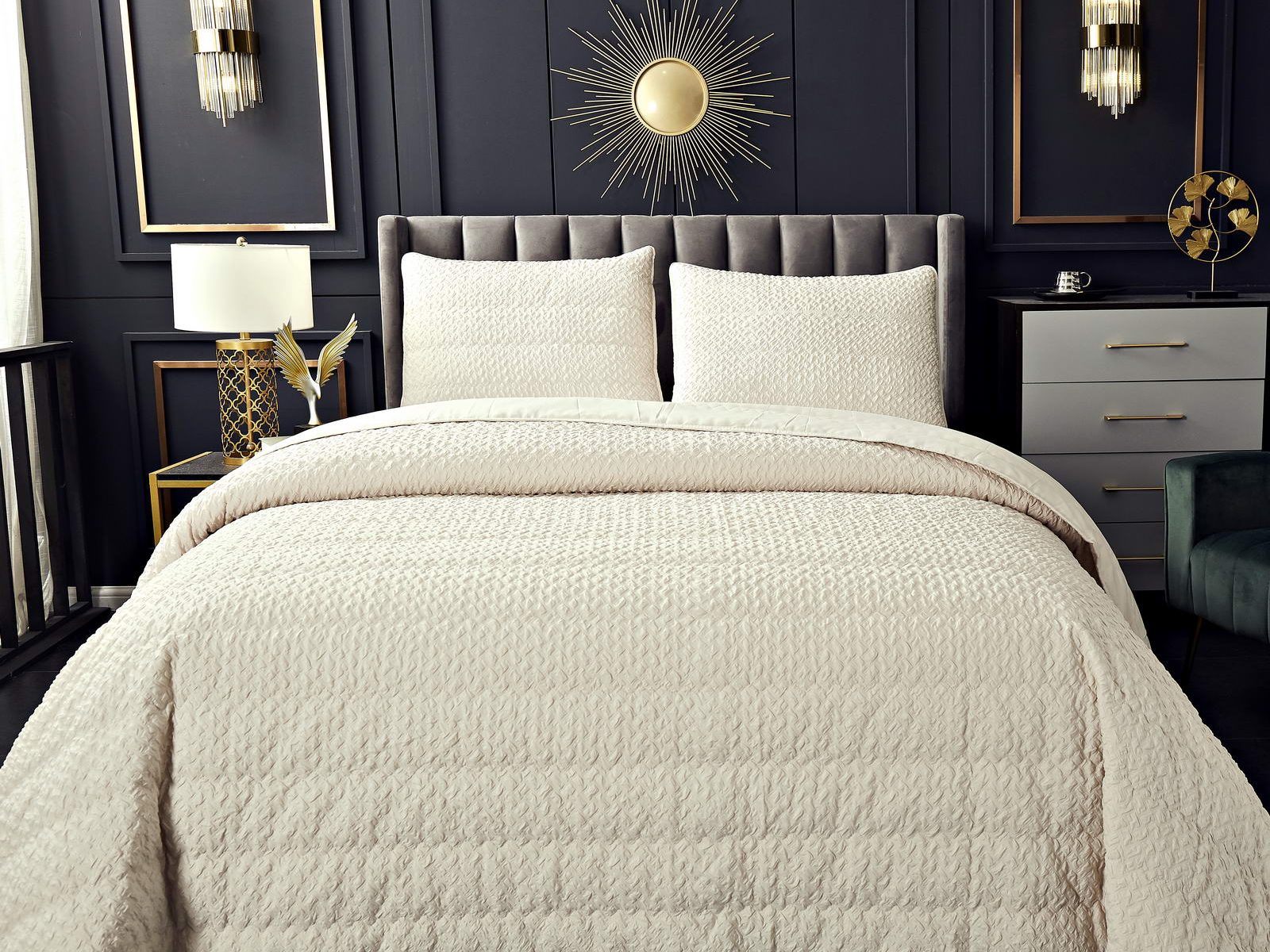 Если вы хотите придать уют вашей спальне, обратите внимание на покрывала коллекции Ирма. Выполненные в стиле модерн, в спокойных тонах, таких как бежевый, серый, молоко, пепел роза, пудра или мокко, они легко впишутся в ваше помещение.
