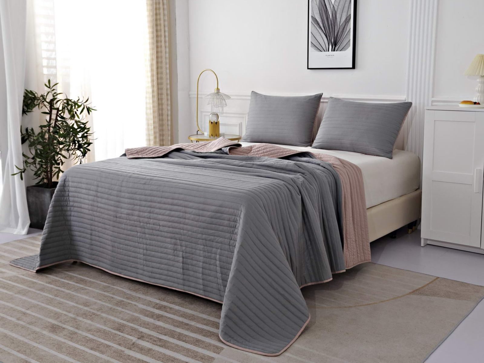 Двусторонние стеганные покрывала Самуэль выполнены из вискозы и хлопка, они легкие и прочные. В комплект входят покрывало и одна либо две наволочки (50х70 см) из аналогичного материала в зависимости от размера, вы можете использовать покрывало по назначению, либо в качестве постельного белья. В любом случае, вы будете в восторге от этого комплекта!