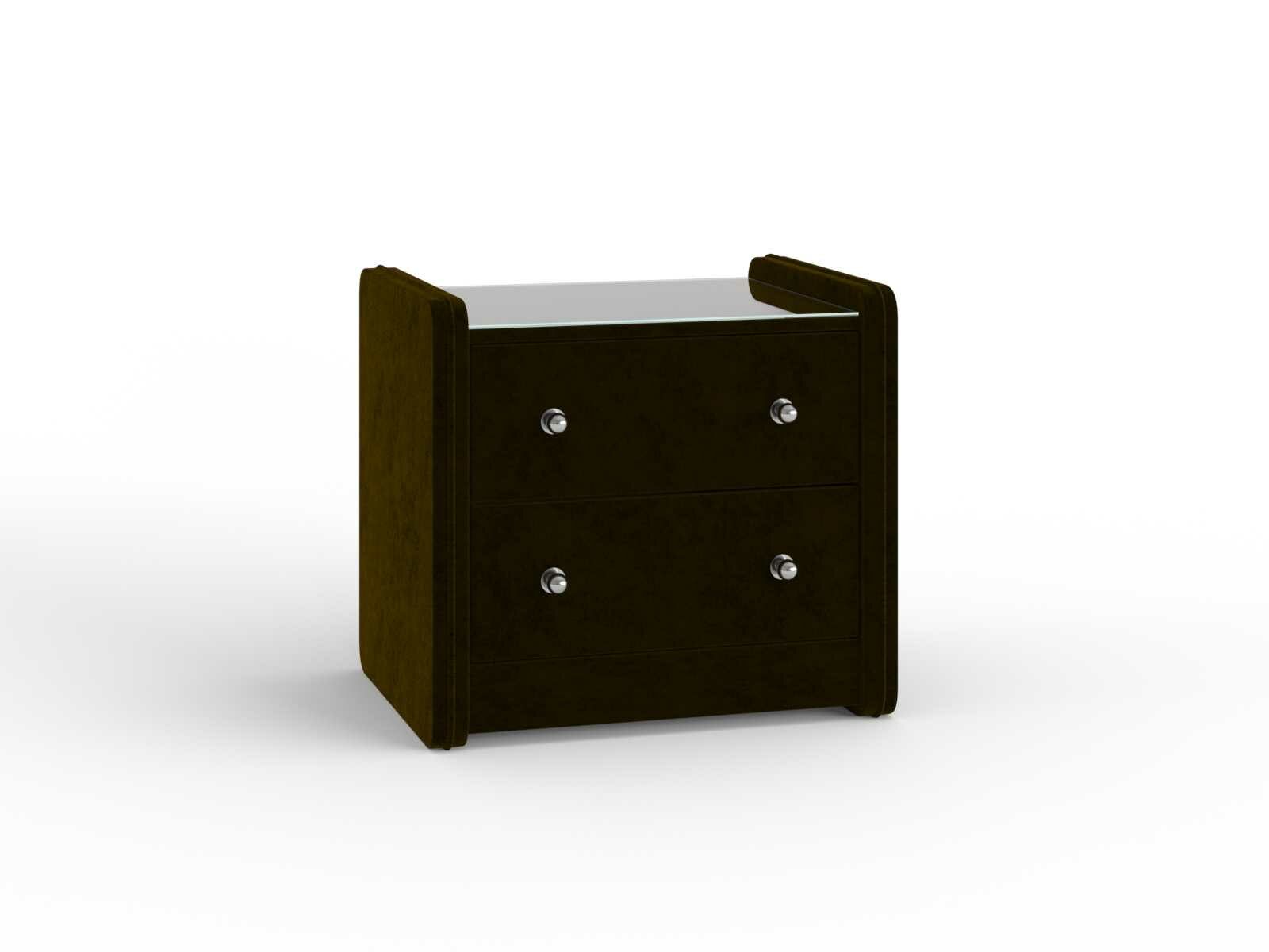 Тумба прикроватная Сандрига выполнена в изысканном классическом стиле. Обивка из высококачественного материала придает мебели особый шарм. Модель легко впишется в современные интерьеры и станет практичным дополнением меблировки спальни. На стеклянной столешнице расположится ночник, книга или чашка чая, а для необходимых под рукой мелочей предусмотрены два выдвижных ящика с ручками.