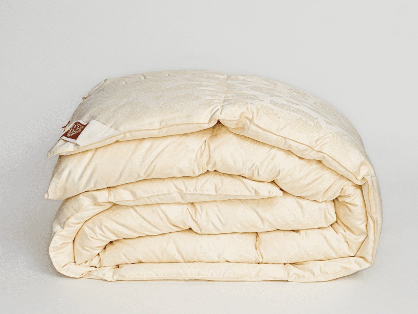 Ткань: жаккардовый пуходержащий сатин, 100% SILK.Цвет - сливочный. Плетение нитей Nm 190/172 TC 362.